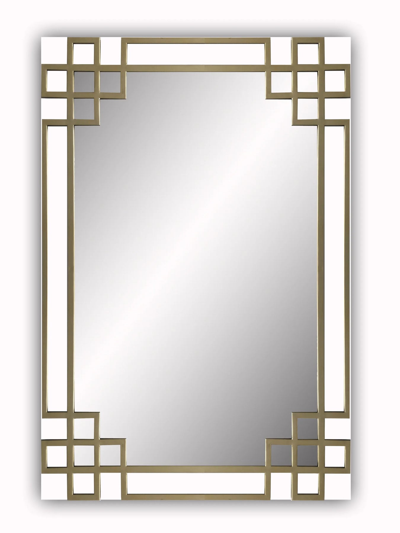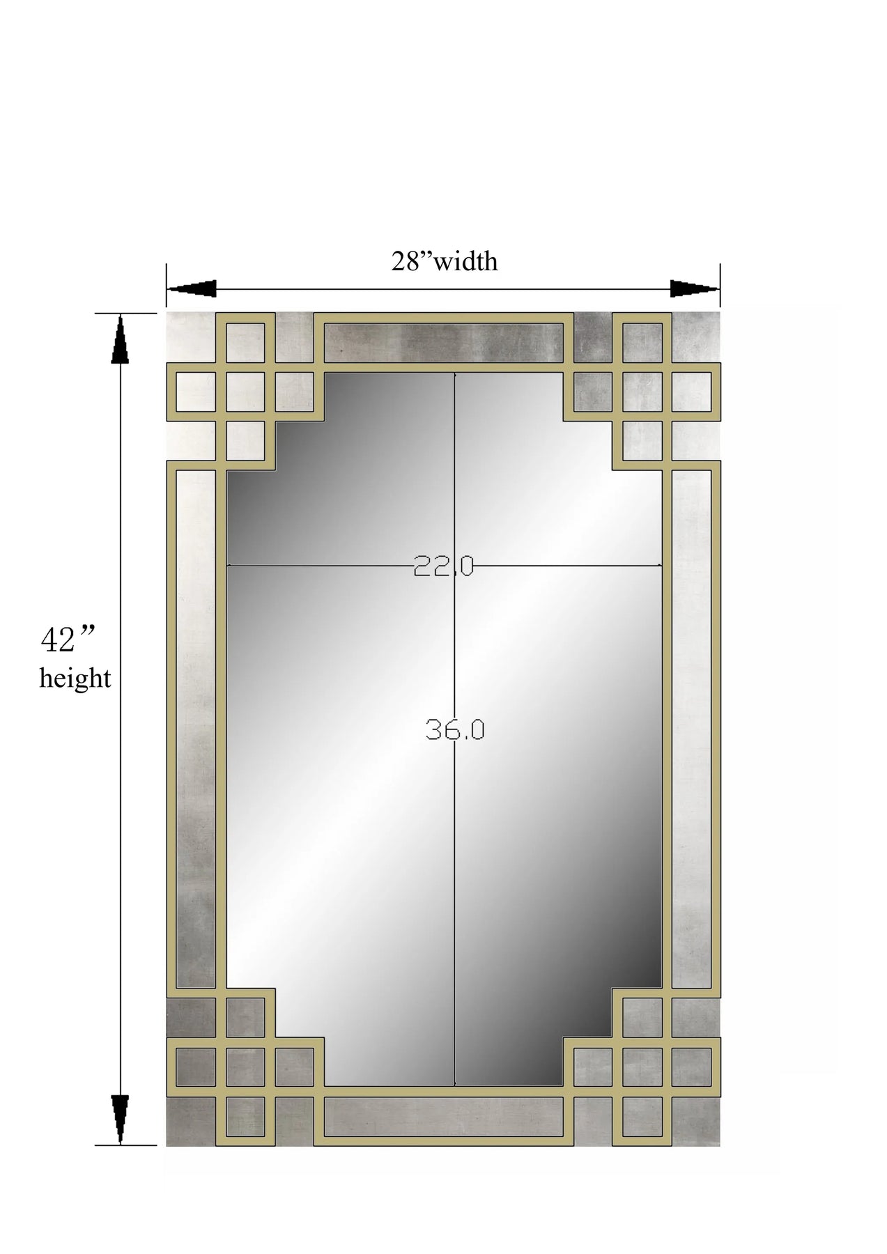 SOLID WOOD FRAME HAND FINISHED in WHITE ; with gold leaf iron overlay for an elegant, glam style. EASY TO HANG ; No worries about extra tools and installation time! This mirror comes with preinstalled mounting hardware, for vertical or horizontal hangingREAL BEVELED GLASS ; Real 5mm thick glass mirror for a truer reflection with a sophisticated edgeSUBSTANTIAL STATEMENT ; Large Frame Size: 28in x 42in x 1in Mirror Size: 23in x 37in x 5mm Weight: 34lbs. This handsome mirror is sized for a lofty presentation piece in any room of your home, and can be an elegant statement as a vanity bathroom mirror or bedroom mirror hung individually or in pairs.HIGH QUALITY ; Every piece in our collection is hand inspected and packaged in high quality protective packaging approved for drop shipment