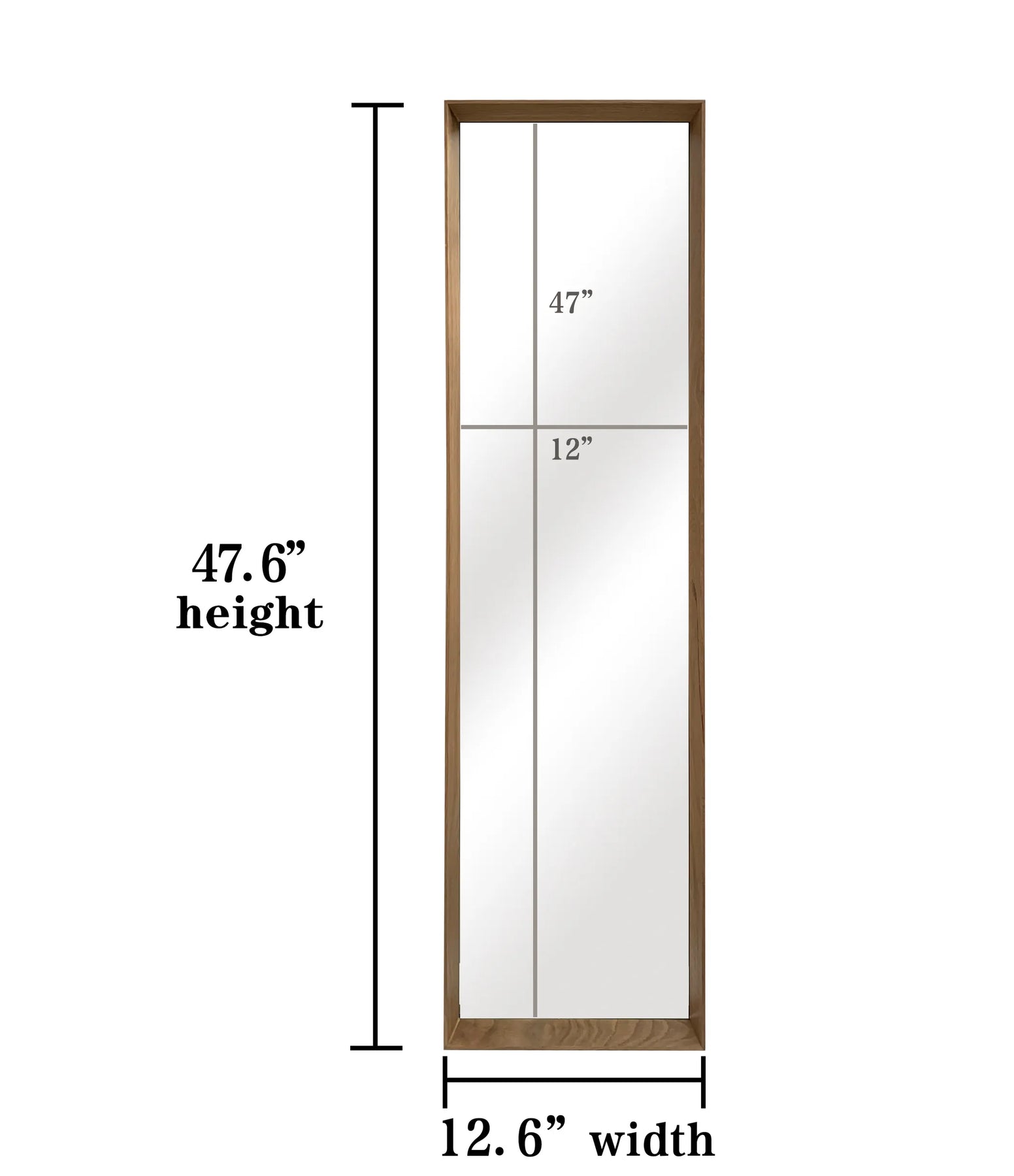 SOLID WOOD TRAY FRAME - Hand finished in Brushed Gold or Brushed SilverEASY TO SECURE ; No worries about extra tools and installation time! This mirror comes with pre-installed mounting hardware, for vertical hanging and securing above your mantel, bureau, dresser, vanity or buffet table.SUBSTANTIAL STATEMENT- Large Frame Size: 12.6 in x 47.6 in x 2.36 inMirror Size: 12 in x 47 in x 5mm Weight: 11 lbs. This beautiful mirror is sized for a lofty presentation piece above your mantel, entry table, vanity, bedroom nightstands, etc.HIGH QUALITY - Every piece in our collection is hand inspected and packaged in high quality protective packaging approved for drop shipment. br>