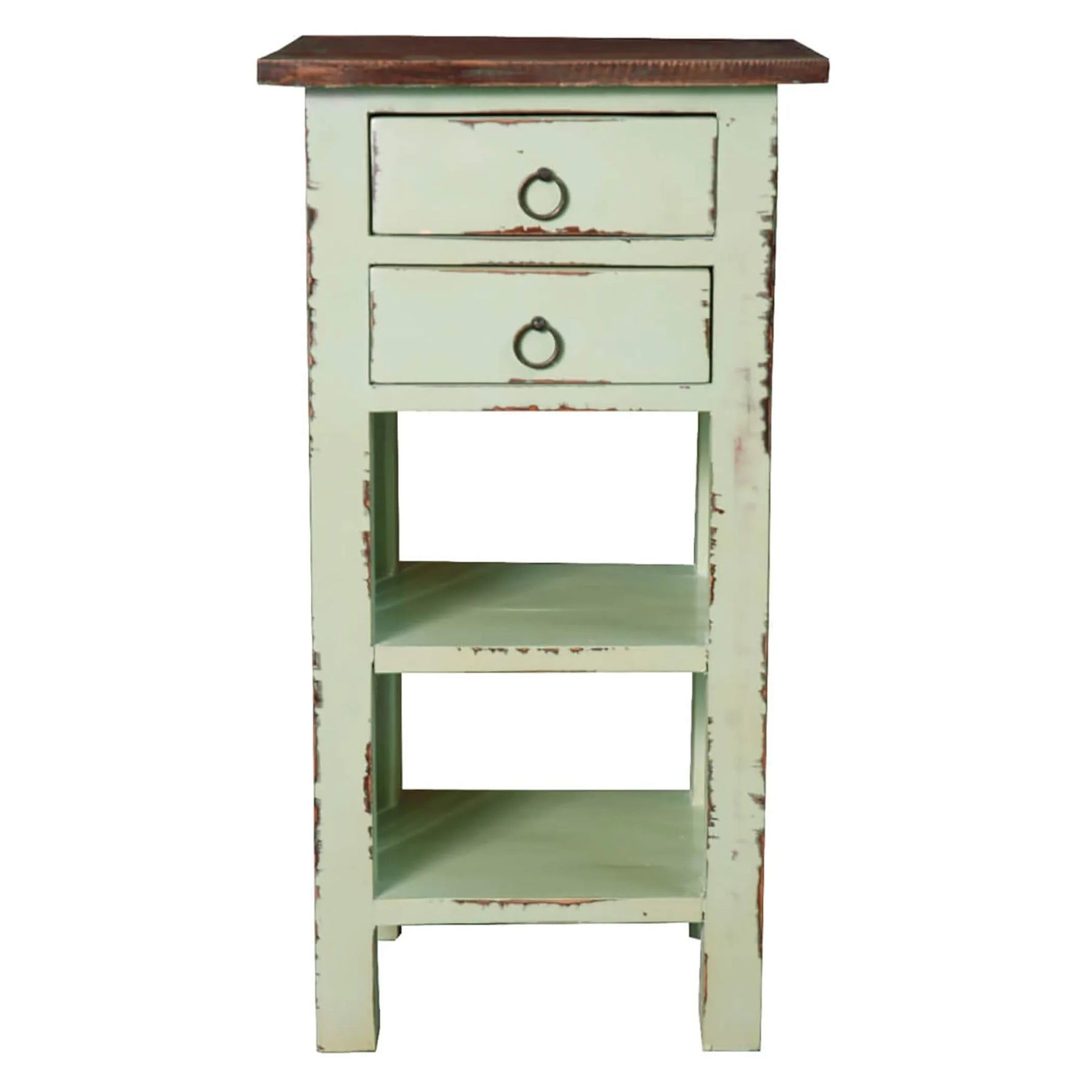 Sunset Trading Cottage End Table with Drawers and Shelves | Bahama Blue/Raftwood Brown Solid Wood | Fully Assembled Narrow Display Shelves