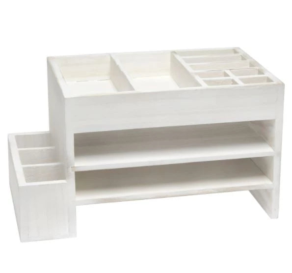 Keep your workstation both organized and stylish with this convenient and decorative wood desk organizer. It features 2 shelves and 12 compartments in different sizes for various office supplies. Perfect for keeping your home or work office organized in style!