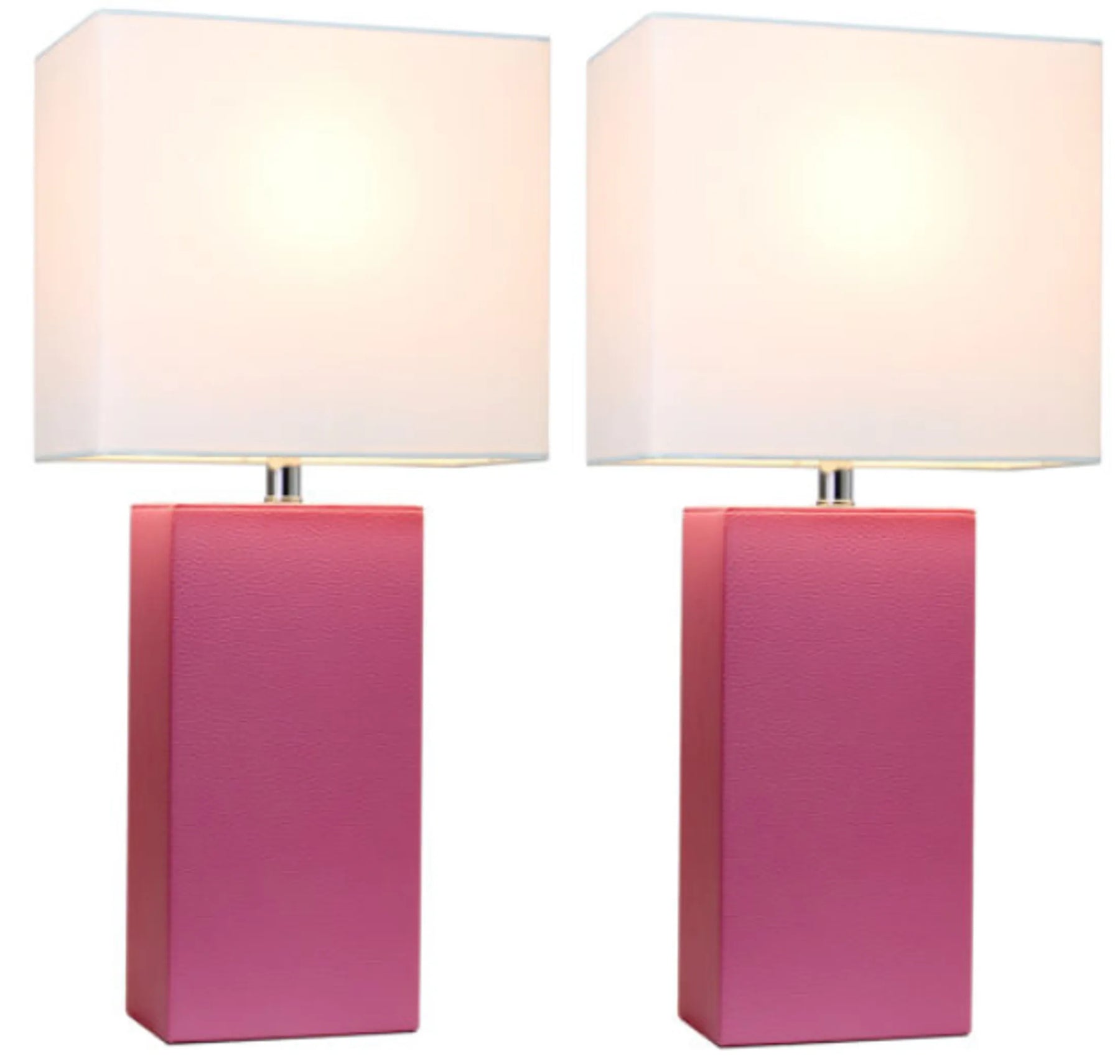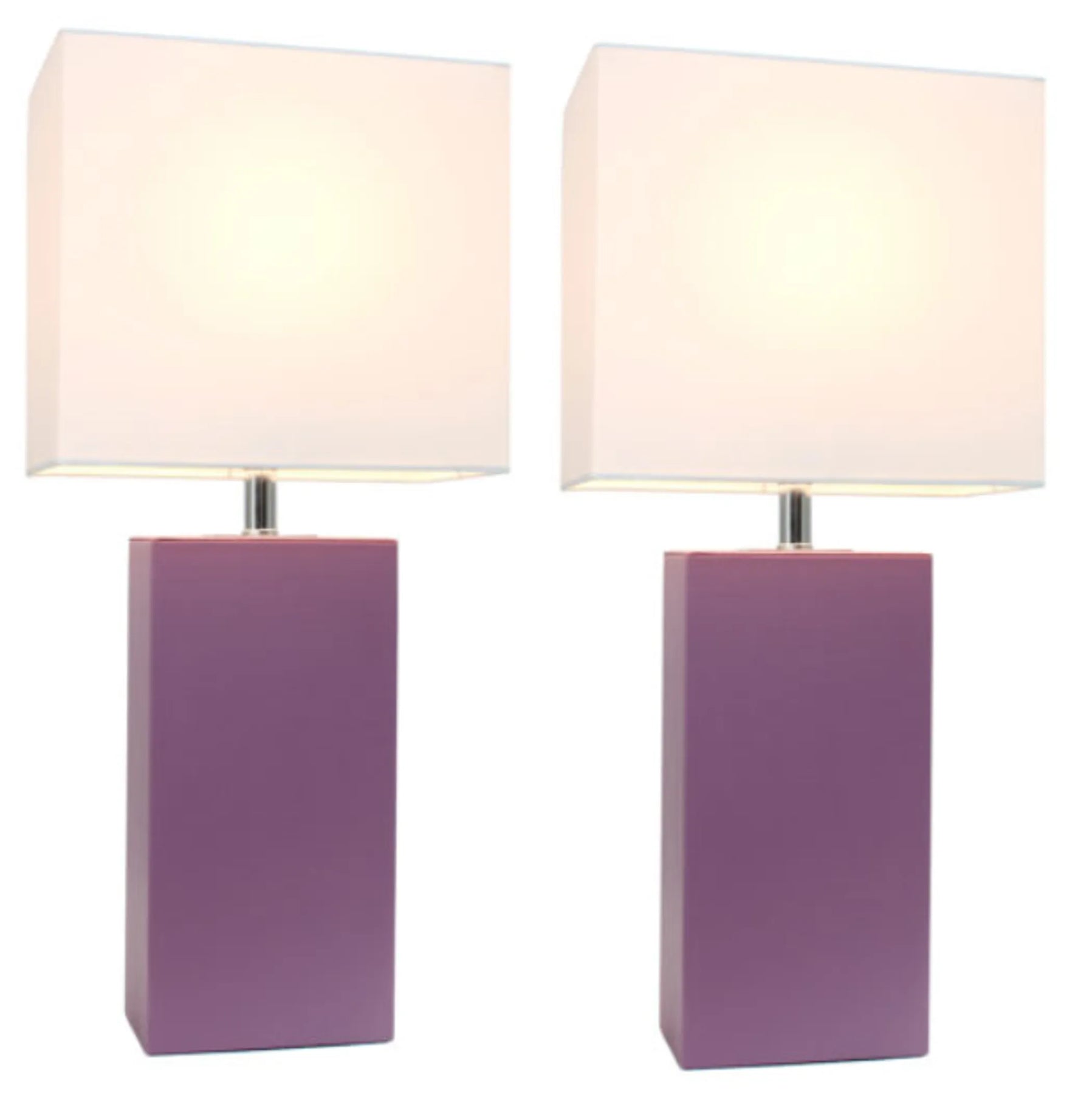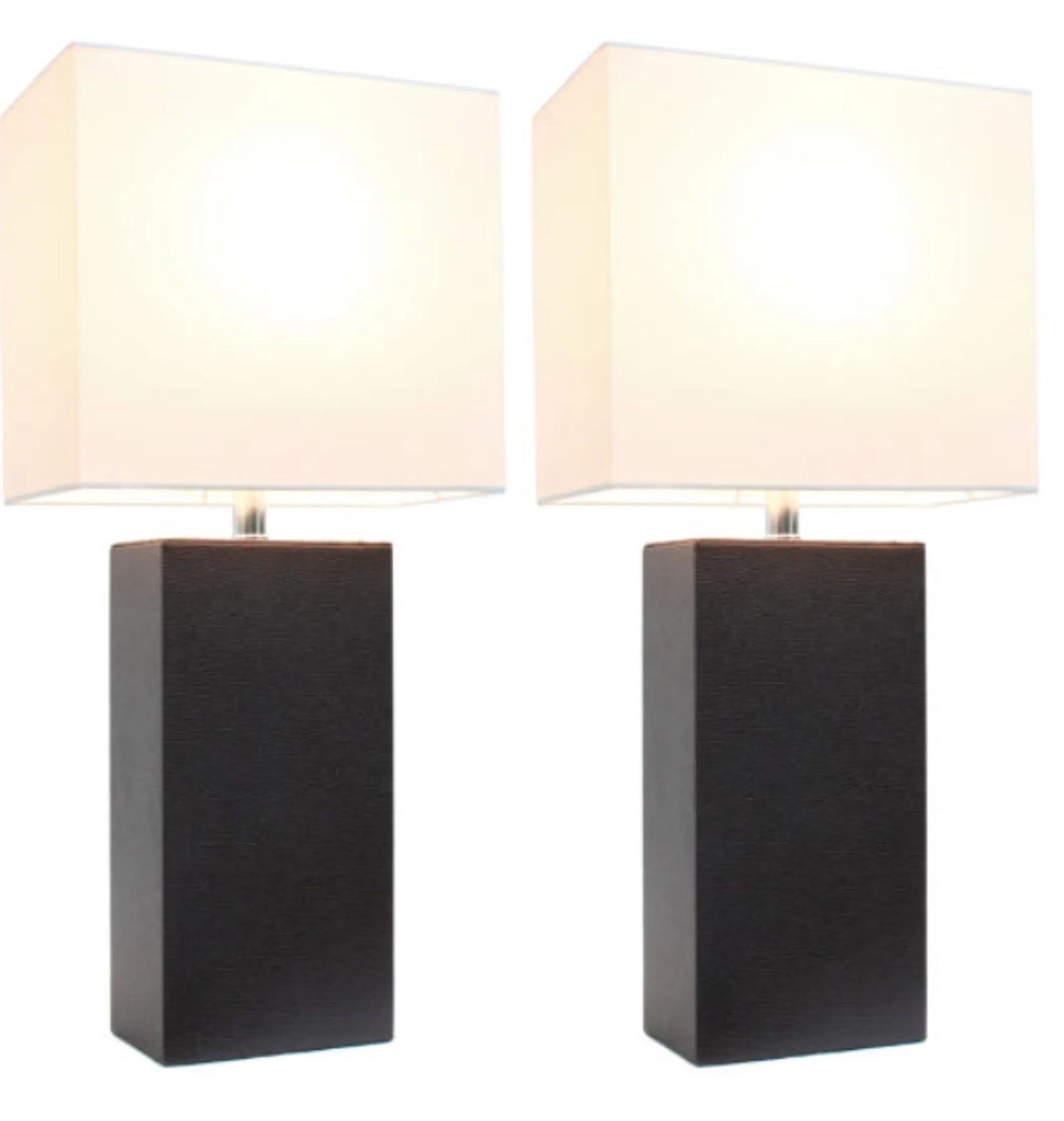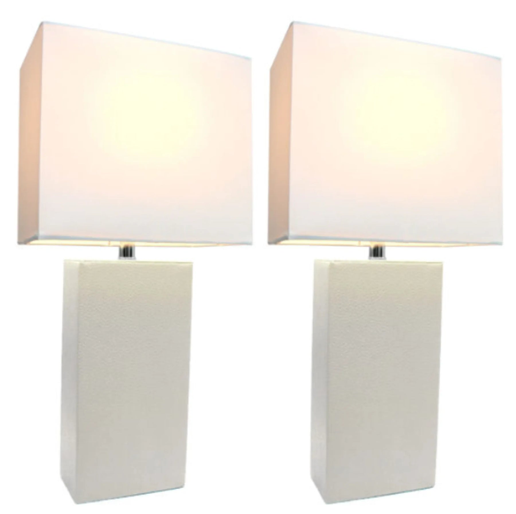 Elegant Designs Modern Leather Table Lamps with White Fabric Shades (Set of 2)