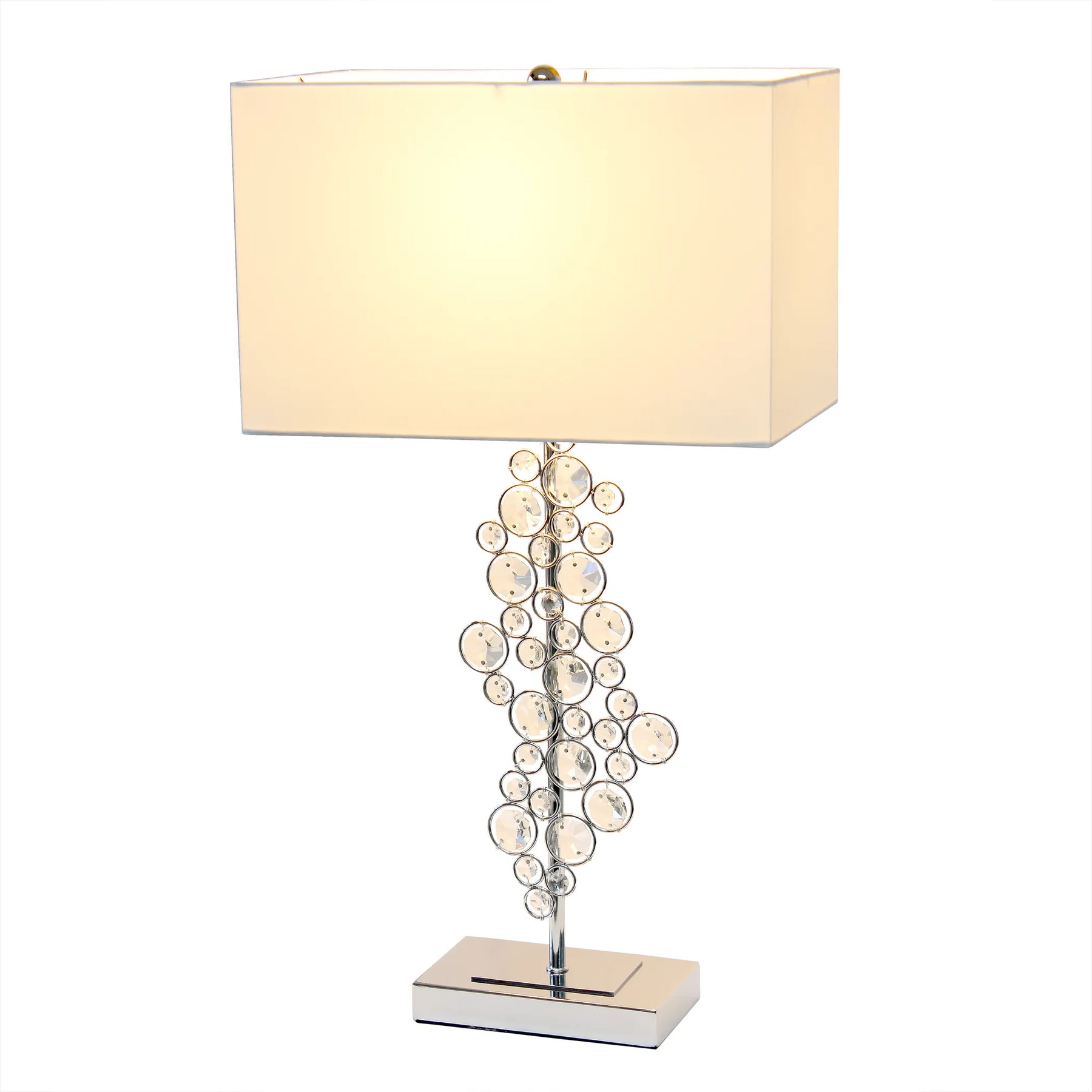 Lalia Home Lumiluxxe Tall Contemporary Crystal Glitz and Chrome Glam Table Lamp with White Fabric Rectangular Shade