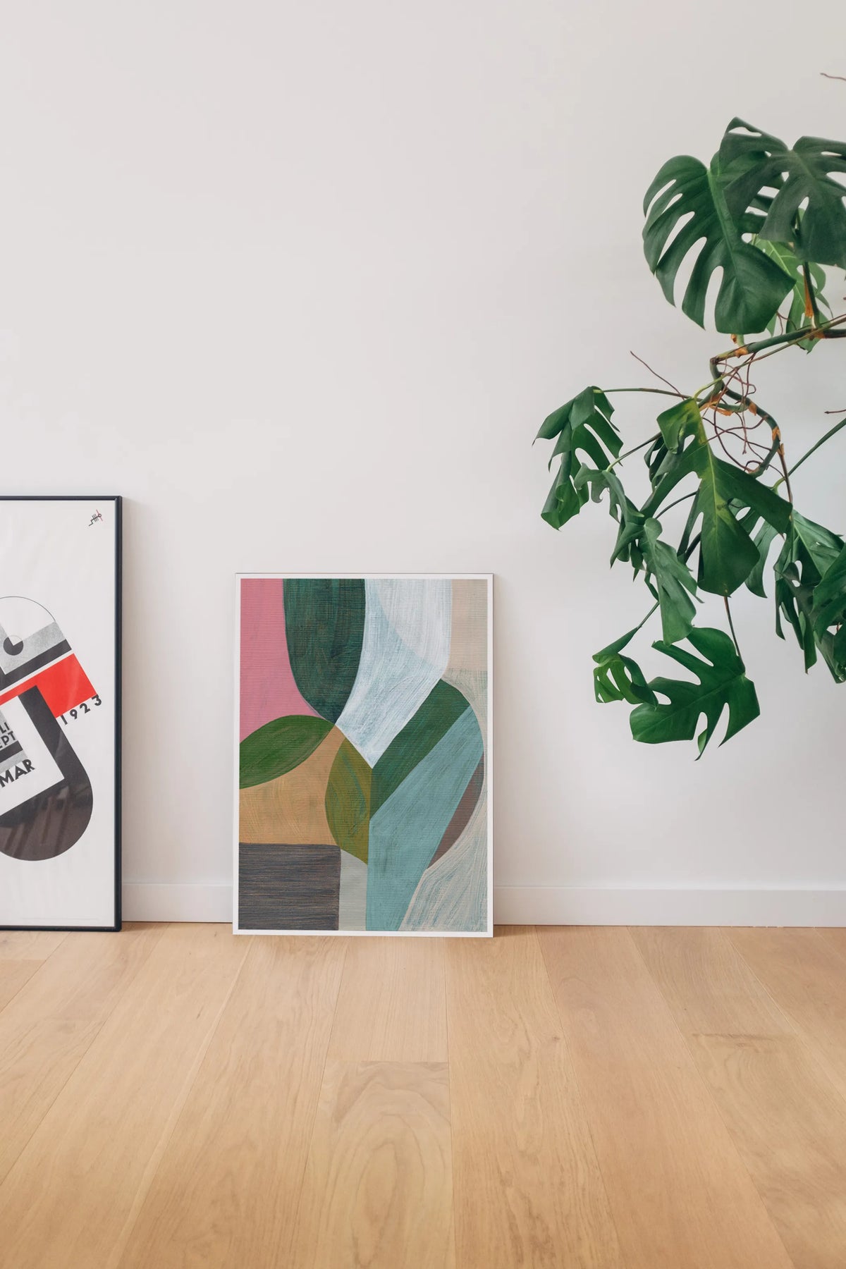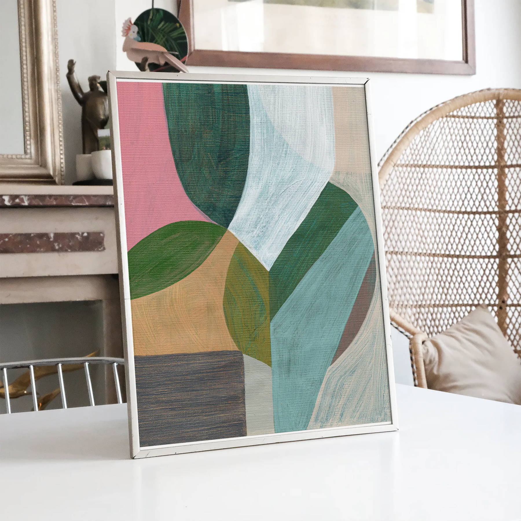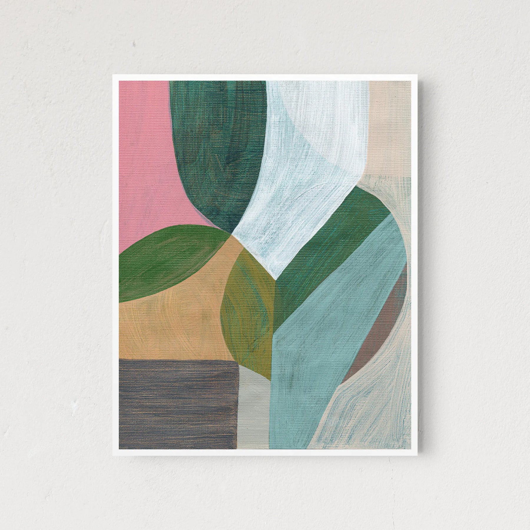 This piece is one of five pieces artist, Rebekah Andrade, painted exclusively for The Crafted Prints. Her work aims to communicate the peacefulness that exists between form and shape and these exclusive pieces do that and more. These works can be the perfect addition or finish to any room, whether your space is modern, minimal, neutral or vibrating with color.