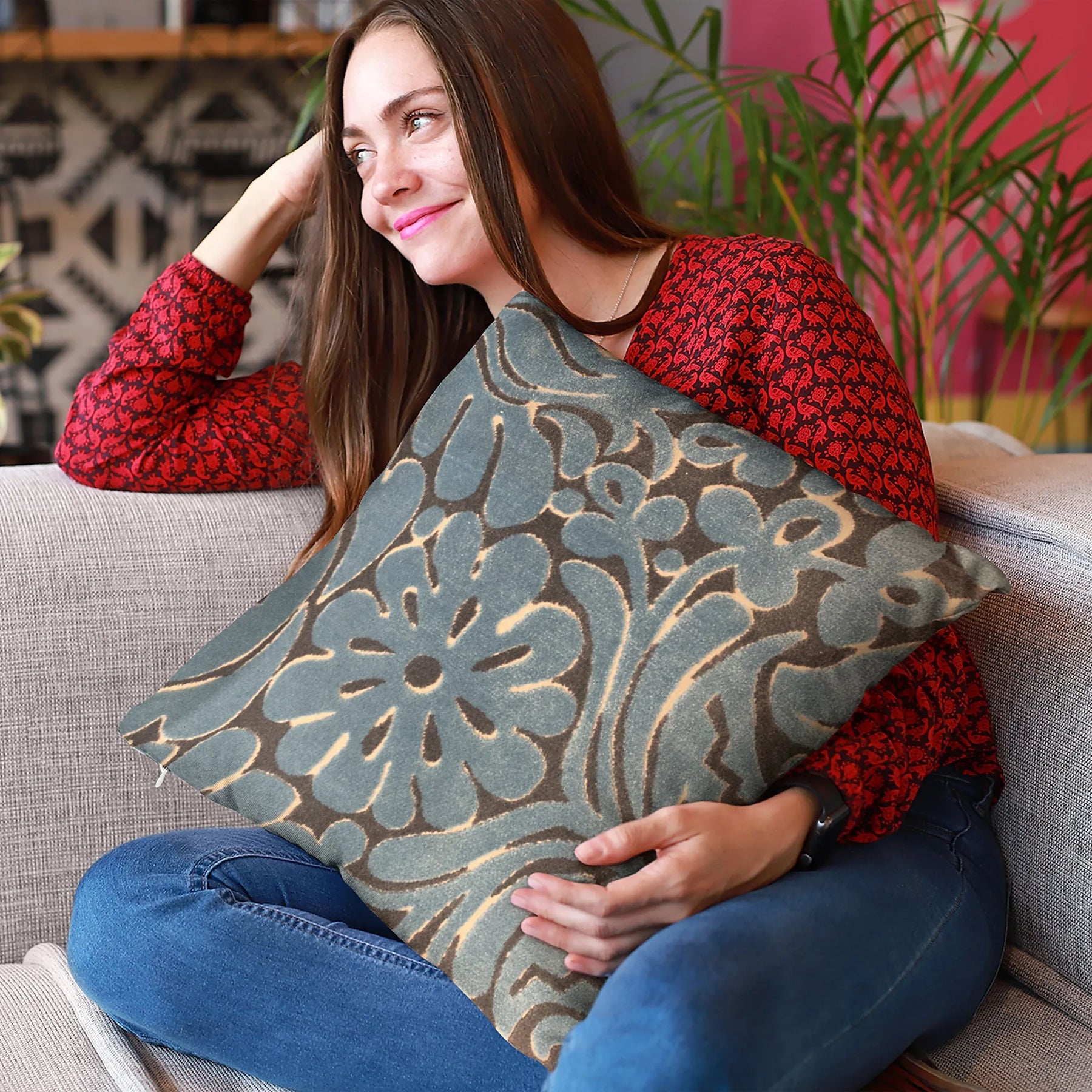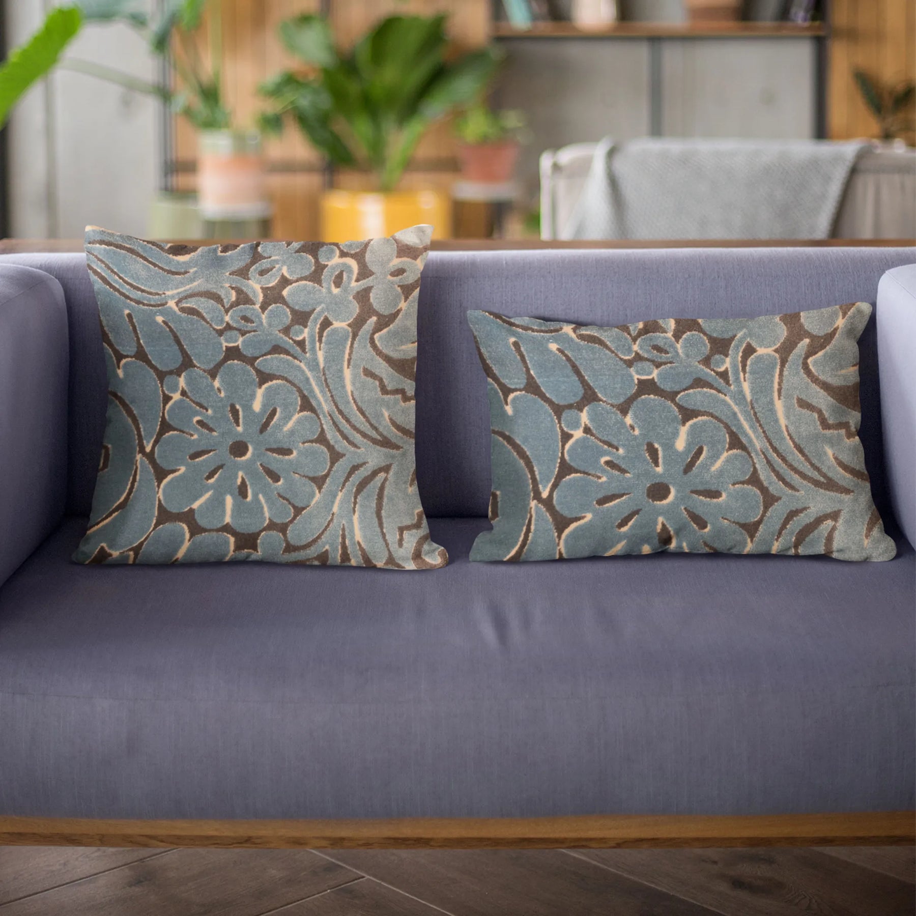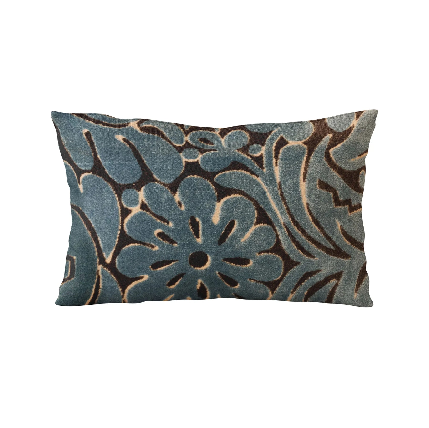 Plutus Blue Flower Velvet Paisley Luxury Throw Pillow