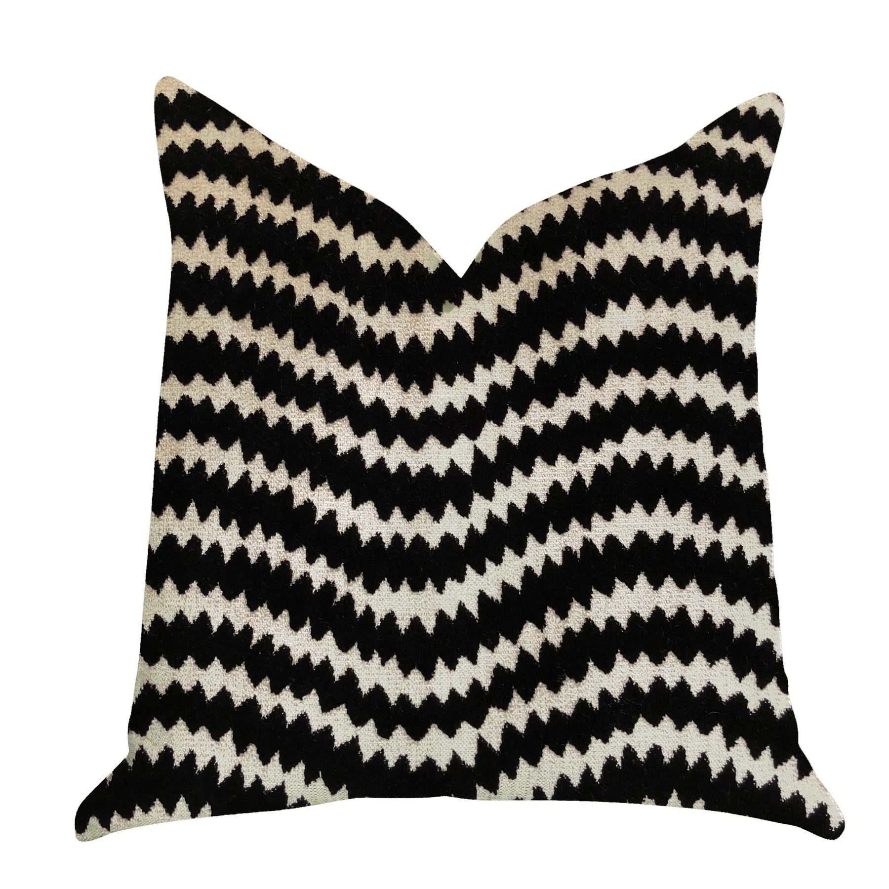 Plutus Jagged Fringe Luxury Throw Pillow in Black and Beige