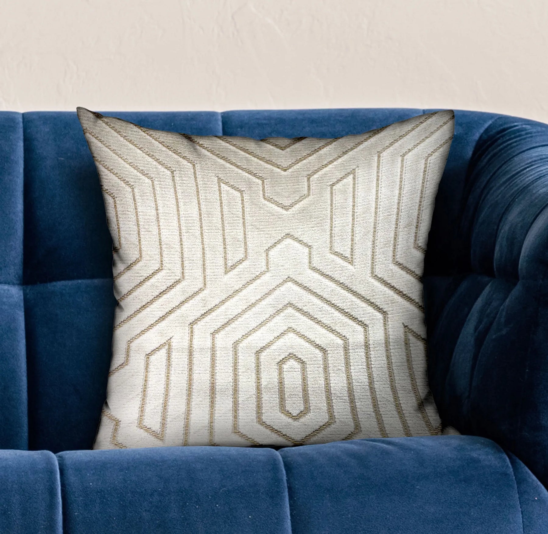 Plutus Pearly Velvet Gray Geometric Luxury Throw Pillow