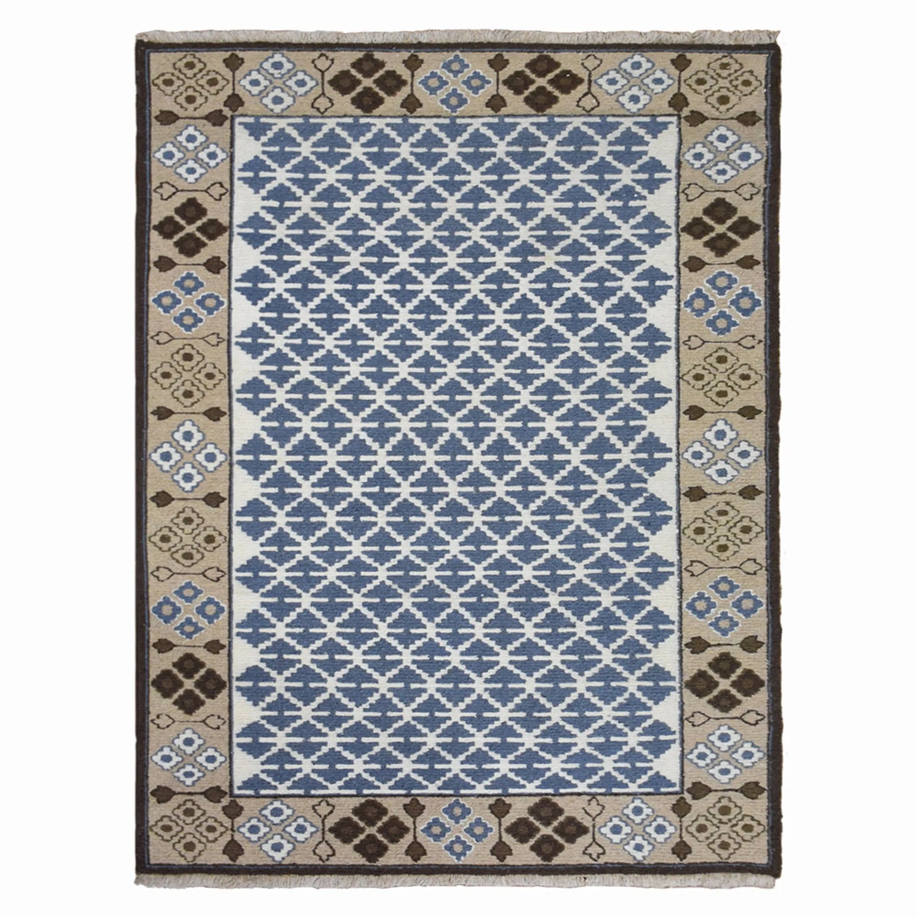 The elegant D?coration inside the home is something that the viewers get allured with and to do the complete justice with your home D?cor style, opt for this oriental patterned hand knotted sumak rug in the radiant and classy color of Blue and Beige. Place this exclusive silk and wool rug in your drawing room, bedroom, dining area, patio or entrance and flaunt its perfect finish and great styling to the visitors at your home. The texture of the silk and wool material gives warmth and suppleness to your feet and also adds the sense of comfort.