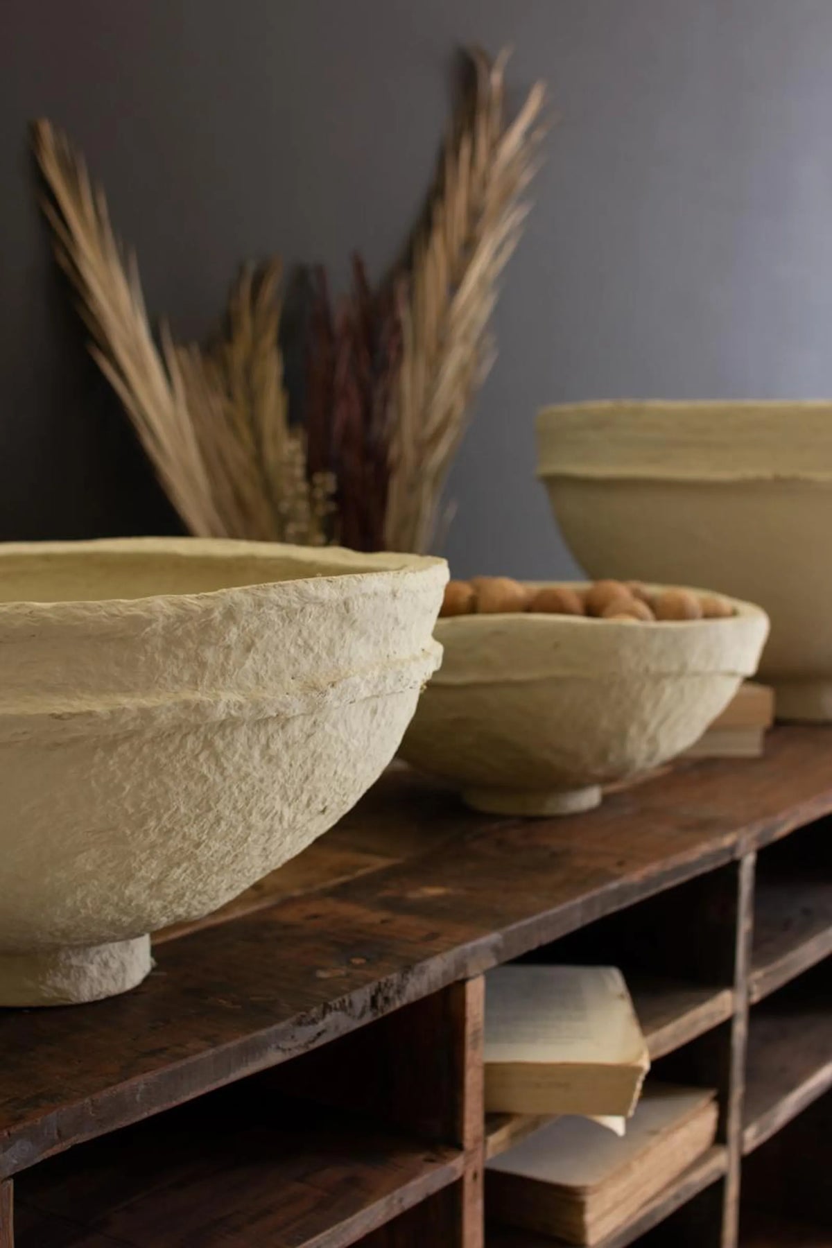 This set will bowl you over. This set of three paper mache bowls is made in India. Display your decor or keep change corralled with these versatile bowls