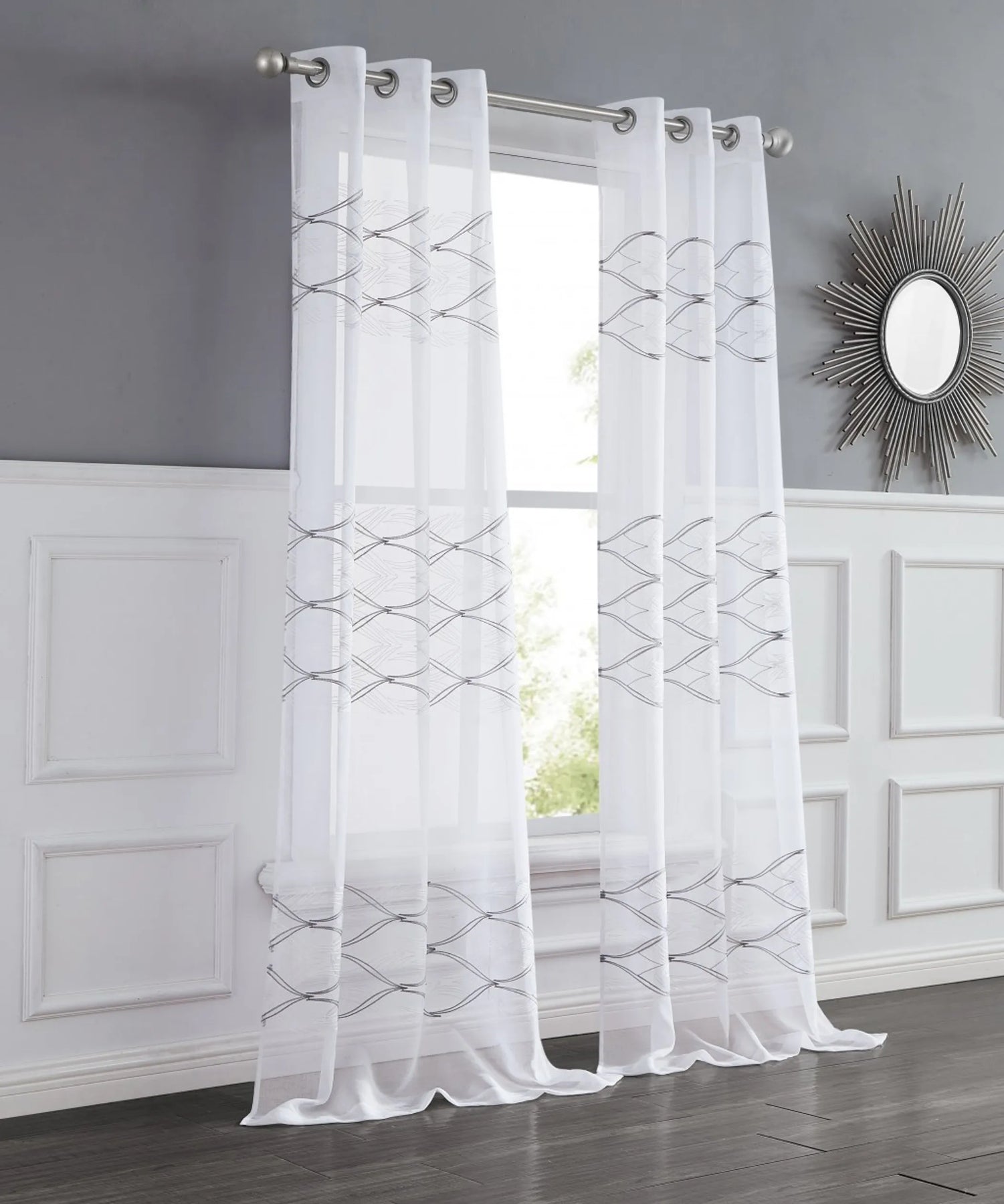 Crafted from high-quality, lightweight fabric, these window panels are both durable and stylish. The embroidered wave patterns add a subtle yet striking touch, making them perfect for modern, coastal, or contemporary interiors. The neutral white color ensures easy coordination with your existing décor while enhancing the elegance of your living room, bedroom, or dining area.