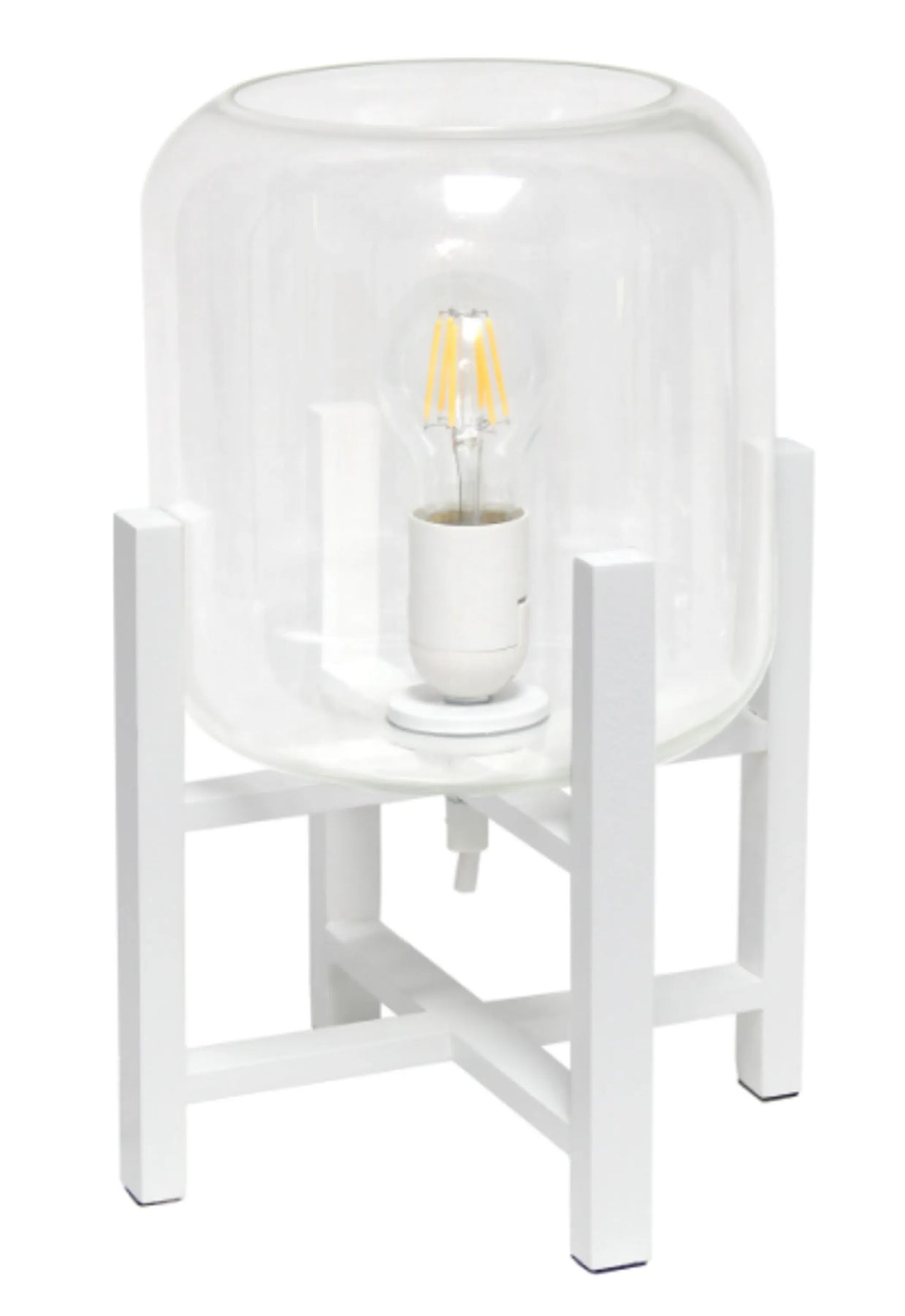 Simple Designs Wood Mounted Table Lamp with Glass Cylinder Shade