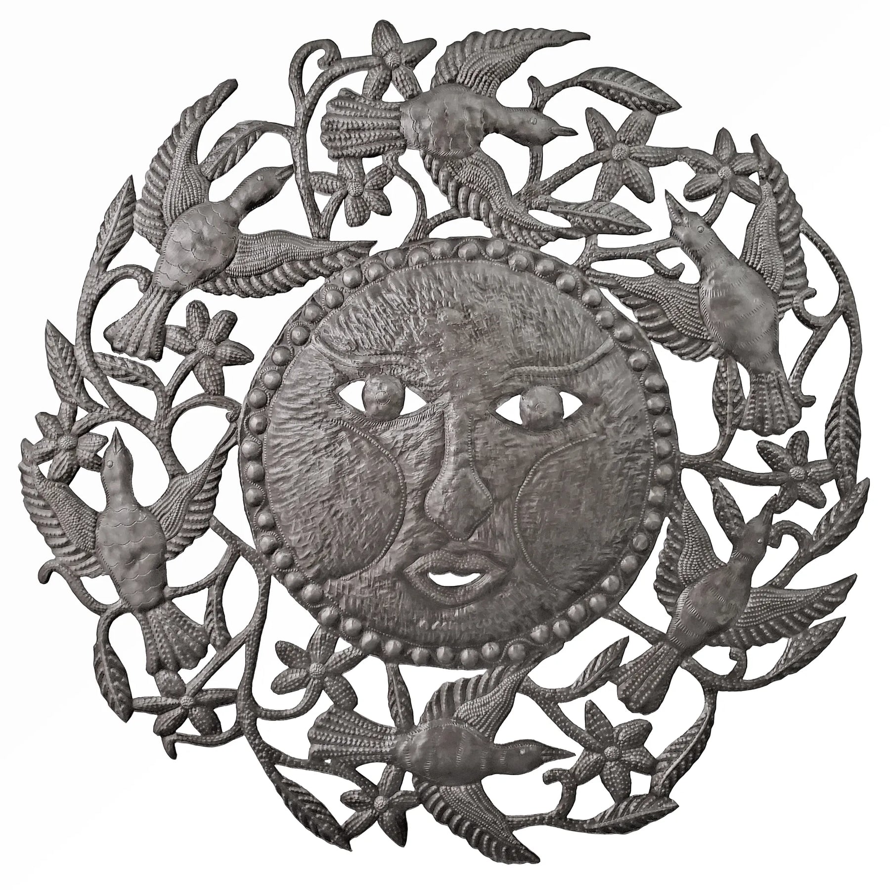 Perfect for home or garden, each Sun & Birds is approximately 33" x 33" x 0.5" and hand-chiseled out of recycled steel oil drums by Haitian artisans using techniques first developed by Georges Liautaud in the late 1950s when he chalked out his first design on a flattened steel oil drum and then cut it out by hand with a mallet and chisel. As each piece is handmade, their final dimensions and finish may vary slightly.