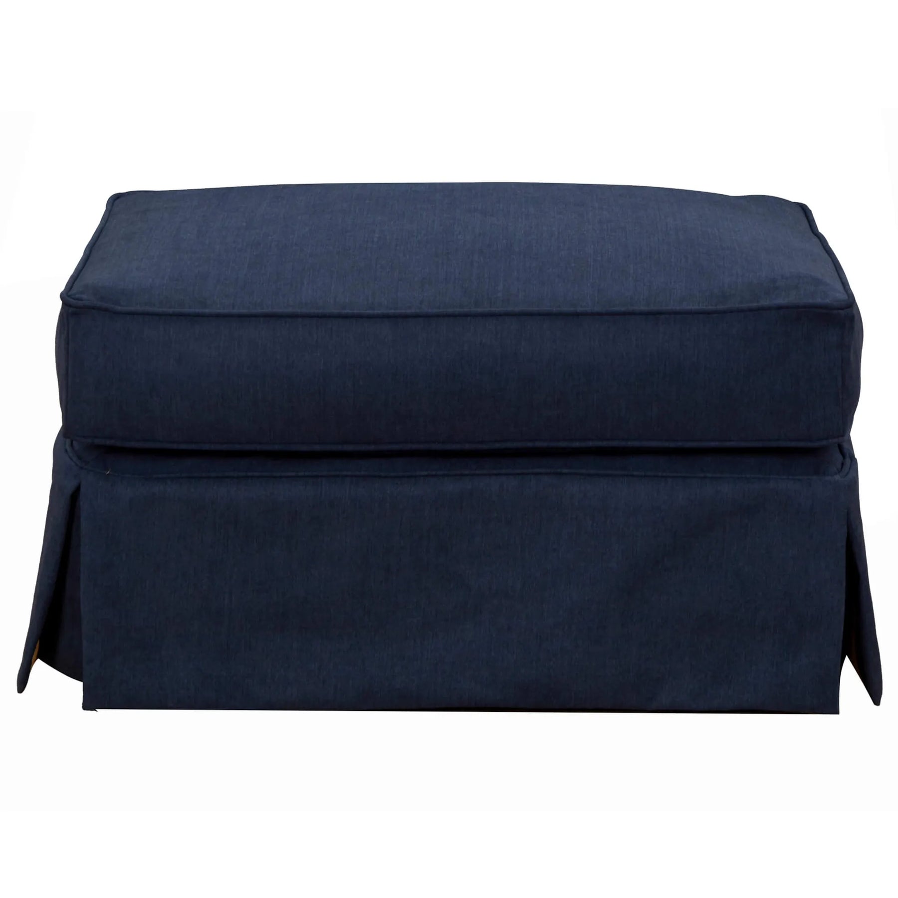 Sunset Trading Americana Box Cushion Slipcovered Ottoman | Performance Fabric Washable Water-Resistant Stain-Proof | Navy Blue