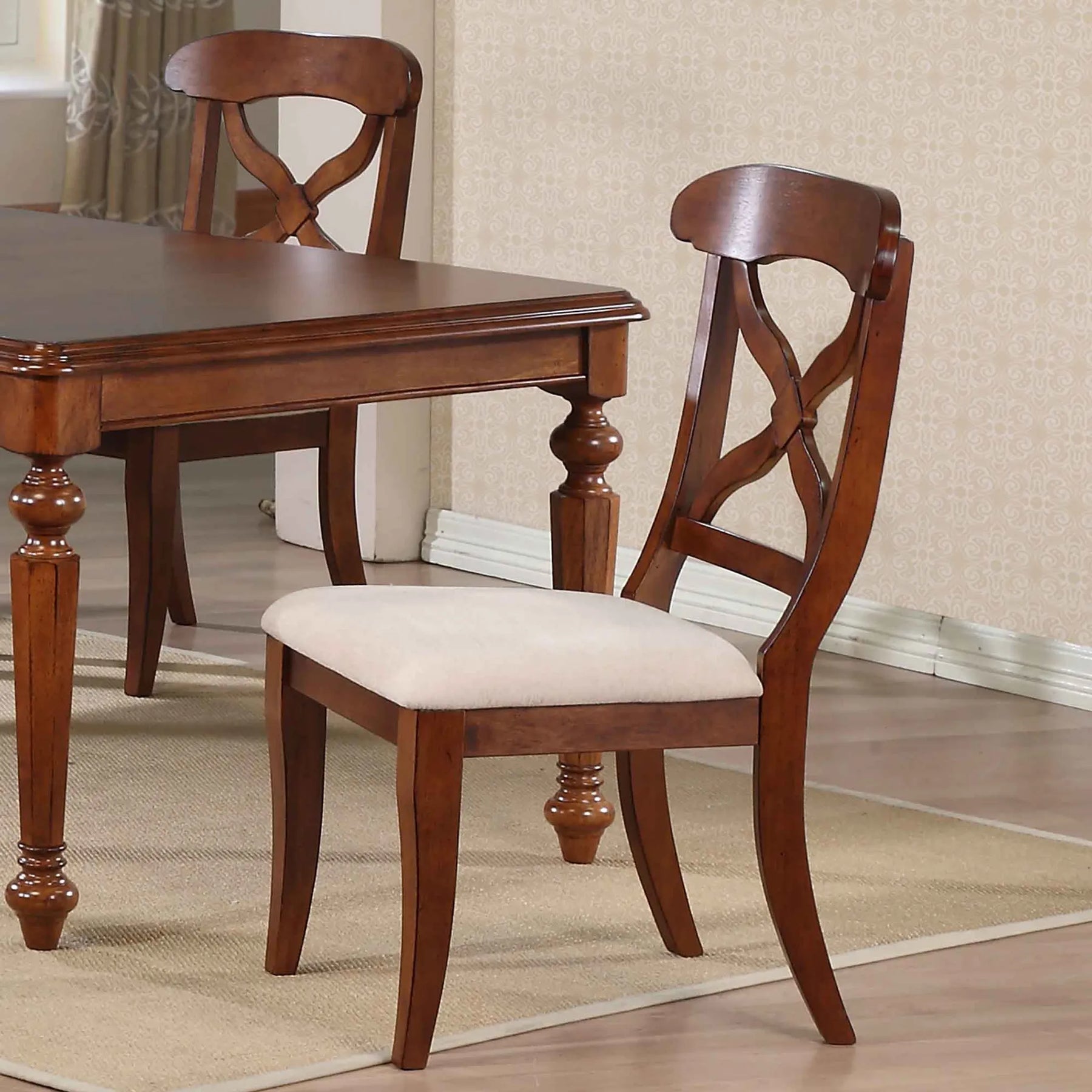 Sunset Trading Andrews Cross Back Upholstered Dining Side Chair | Chestnut Brown Solid Wood | Set of 2