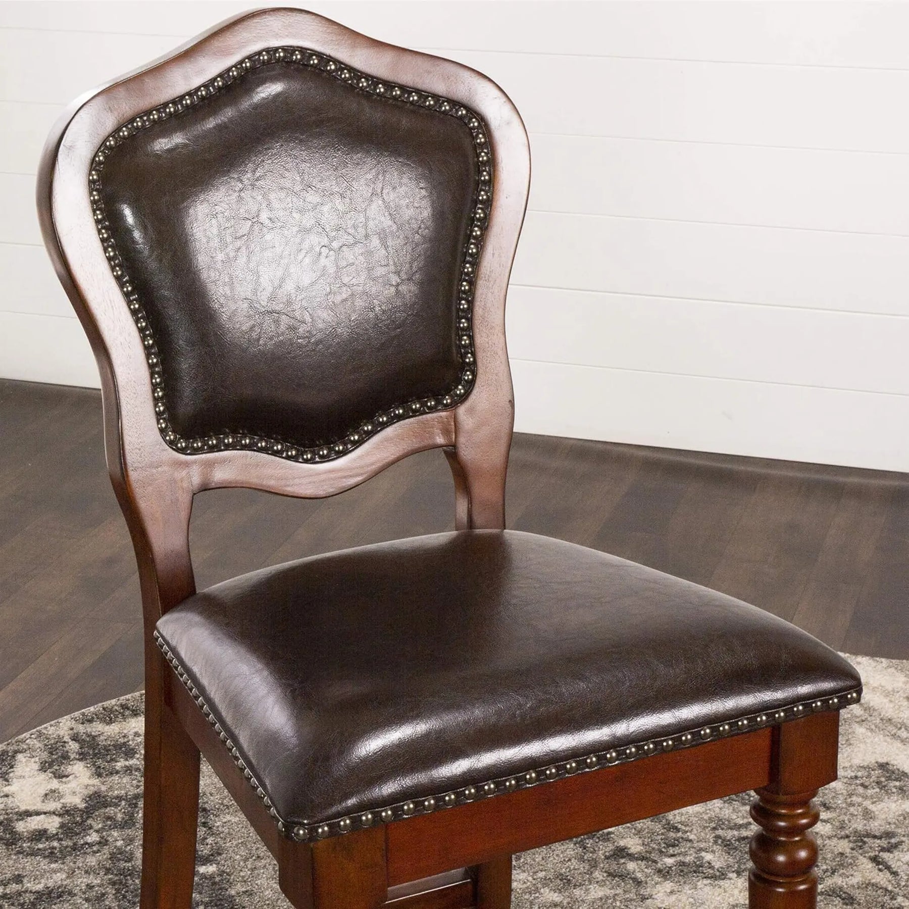 Relaxing upholstered counter bar stools are adorned with regal silver nail heads and feature cozy cushioned seats and backs. Arched Queen Anne style will add sophistication to your kitchen counter, island, and home bar. The high backs give you excellent support to your back and allow you to chill in comfort for long periods of time. Pull it up by a counter to create a new casual dining spot or pair with matching pub poker and chess table to create a fun space for gathering with friends in your living room. Coordinating dining chairs and 2 in 1 dining poker table will make your home bar or kitchen the ultimate recreational room.