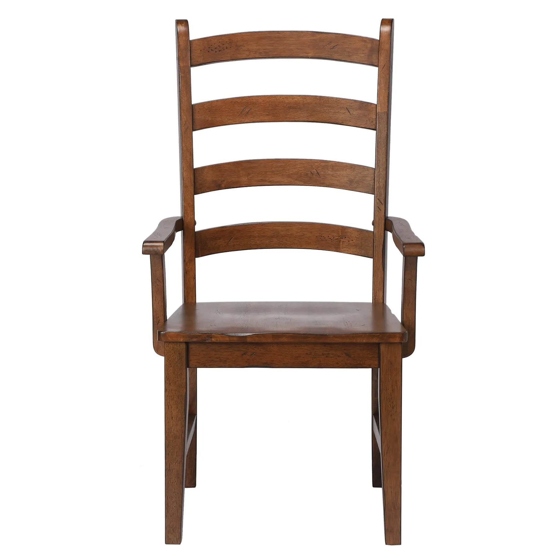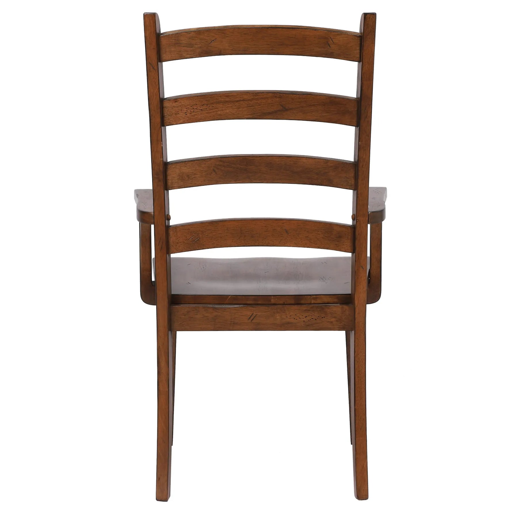 Sunset Trading Simply Brook Ladder Back Dining Chair with Arms | Set of 2 | Amish Brown Solid Wood