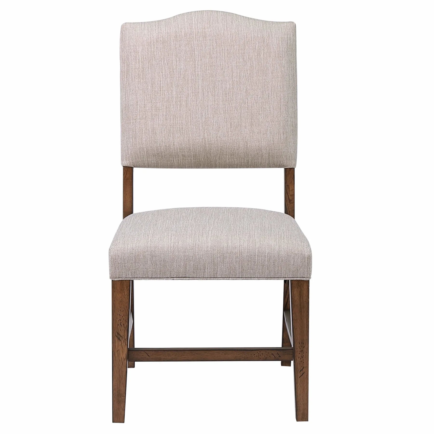 Whether you dine or oops, spill the tea or wine, these Amish Brook upholstered dining chairs are just divine. Greige linen-look upholstery adds luxury and the C6 performance treatment has you covered! Matching dining room tables and storage cabinets available separately.