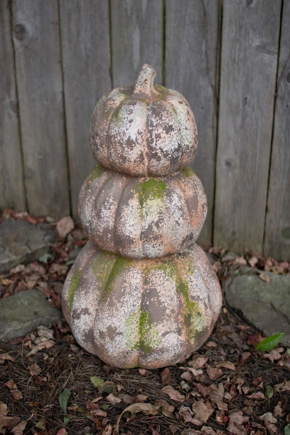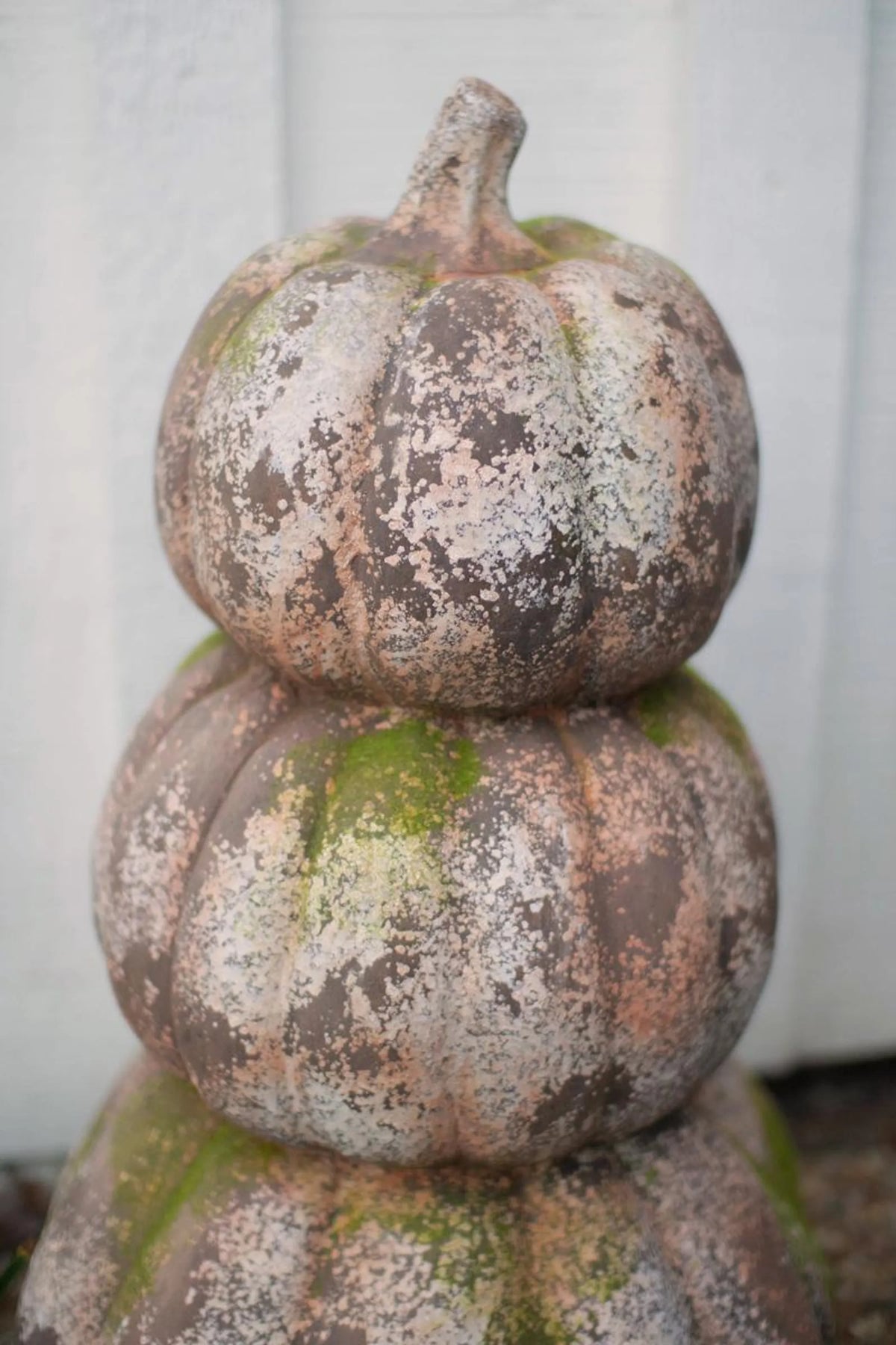 THREE STACKED FAUX CONCRETE PUMPKINS